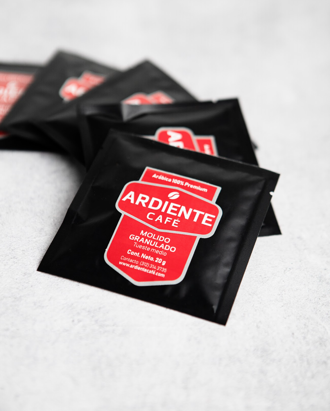 Nuestra presentación de 20g es una excelente opción para las tiendas de autoservicio y hoteles o simplemente cuando deseas disfrutar de tu Ardiente café en todo lugar.
